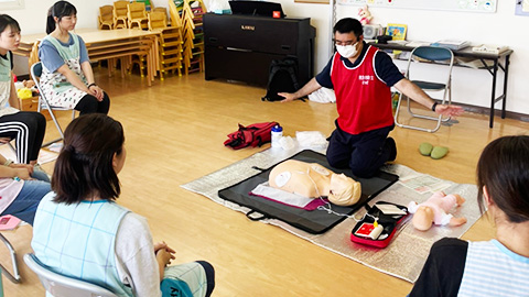 国家資格者である救急救命士や看護師を中心に懇切丁寧にお手伝いさせて頂きます。少しでも記憶に留めて頂き、万が一の際に「実践」頂ける事を目標に講習を進めて参ります。